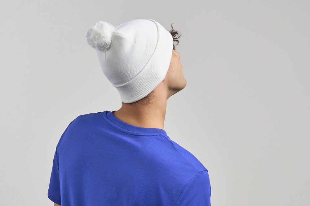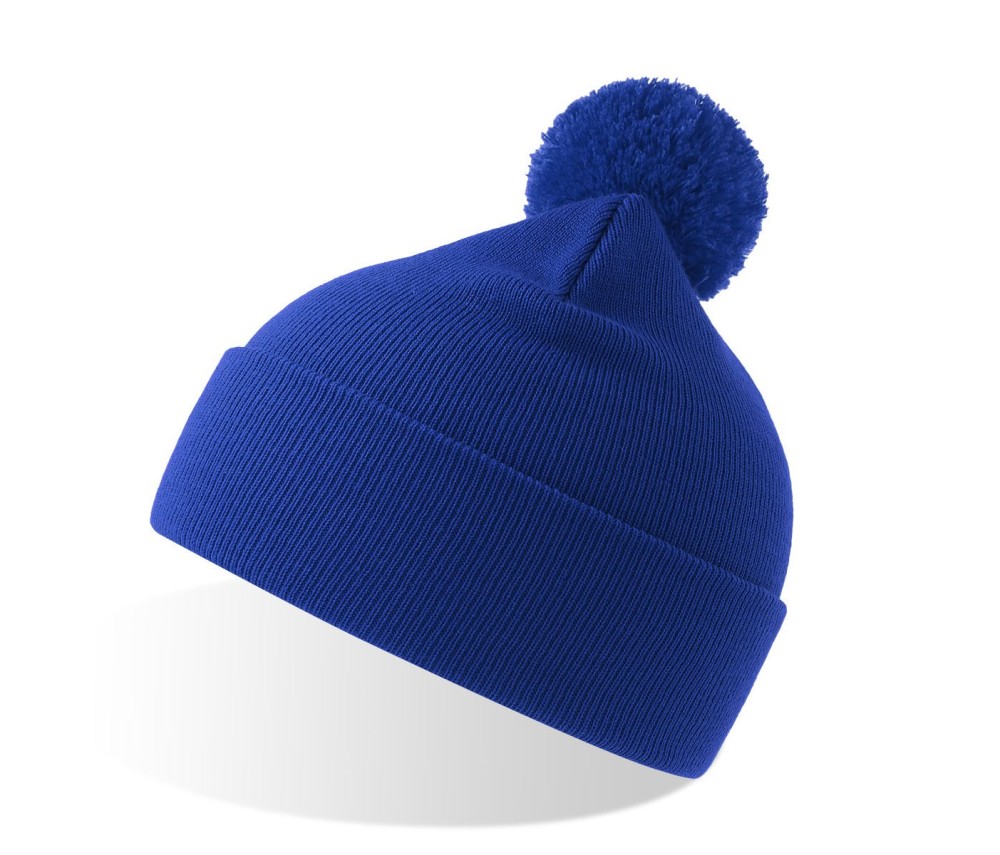 Шапка вязаная  двойная Wind-S с помпоном, Синий