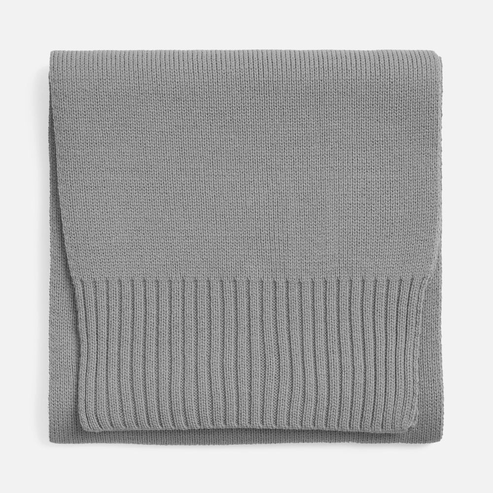 Классический однослойный шарф гладкой вязки. Края, связанные резинкой, придают изделию завершенный и аккуратный вид.