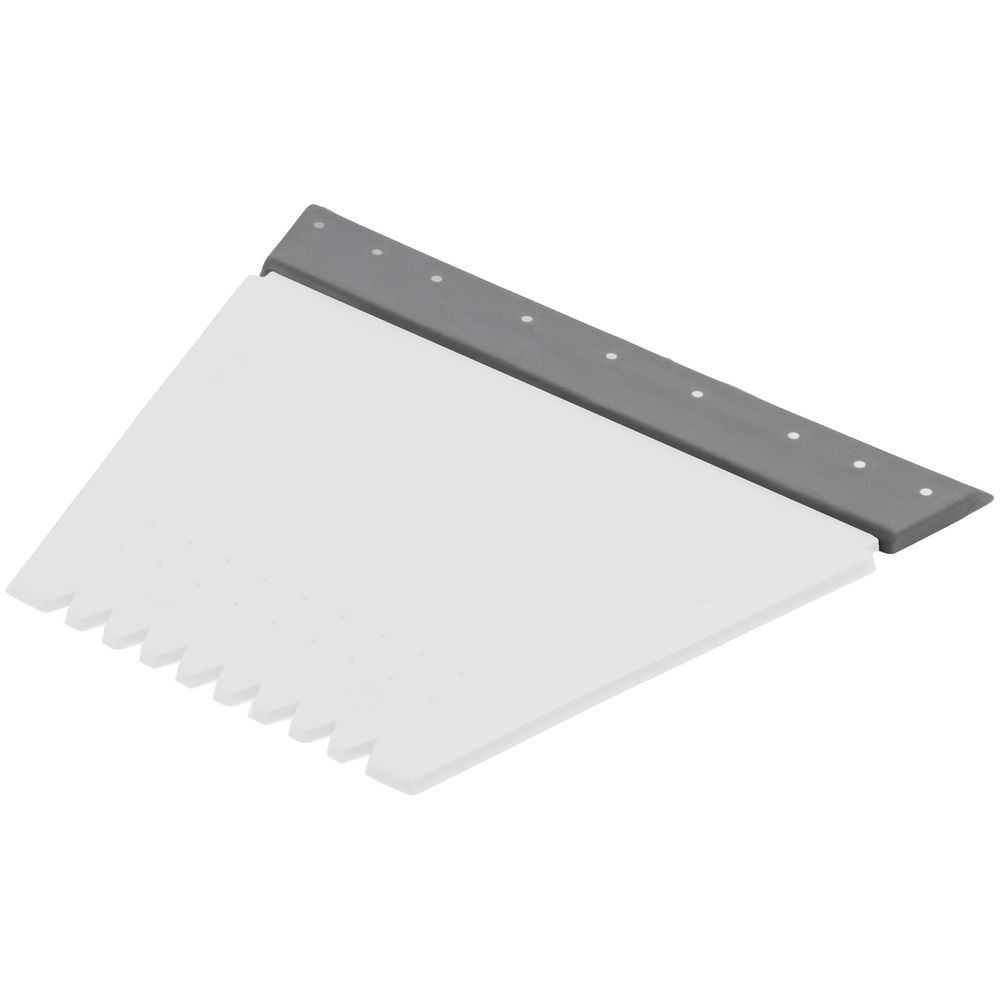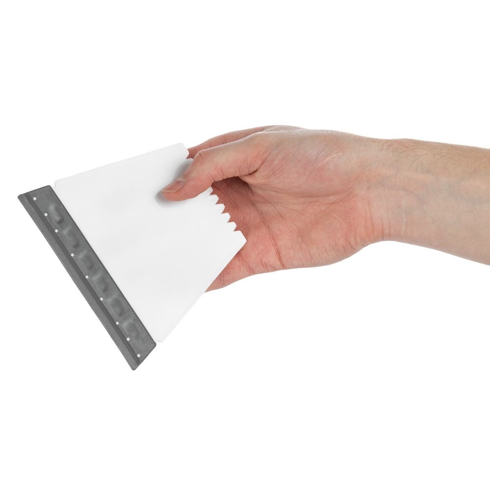 Скребок предназначен для очистки стекол и зеркал автомобиля от снега, наледи и воды. Все 4 стороны скребка рабочие: резиновый водосгон с широкой стороны, зубья-ледорубы с узкой и две скошенные грани по бокам.