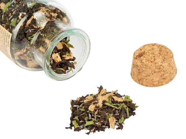 Чай с соком - натуральный, вкусный и полезный для здоровья напиток. Это не просто чай с фруктовыми кусочками и добавками, а чайные листья, «наполненные» соком свежайших плодов. Для изготовления 2 тонн такого чая используется 20 тонн свежих фруктов. По технологии чайные листья смешиваются с нарезанными кусочками фруктов и пропитываются выделяющимся соком. После этого вобравшие сок листья чая высушиваются и смешиваются с сублимированными ягодами или фруктами, образуя уникальный напиток. Состав: чай чёрный с имбирём и соком имбиря (чай чёрный байховый крупнолистовой, кусочки имбиря, сок имбиря), мята сушёная, Лаванда.