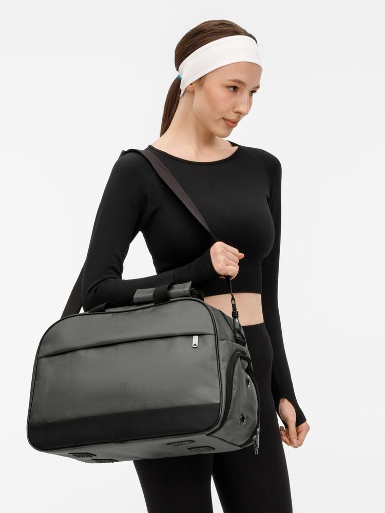 Усиленное дно с рифлеными ножками защищает сумку от износа, а боковое отделение с вентиляцией идеально подходит для обуви. Сумка оснащена удобными ручками и регулируемым плечевым ремнем, что обеспечит комфорт при переноске.