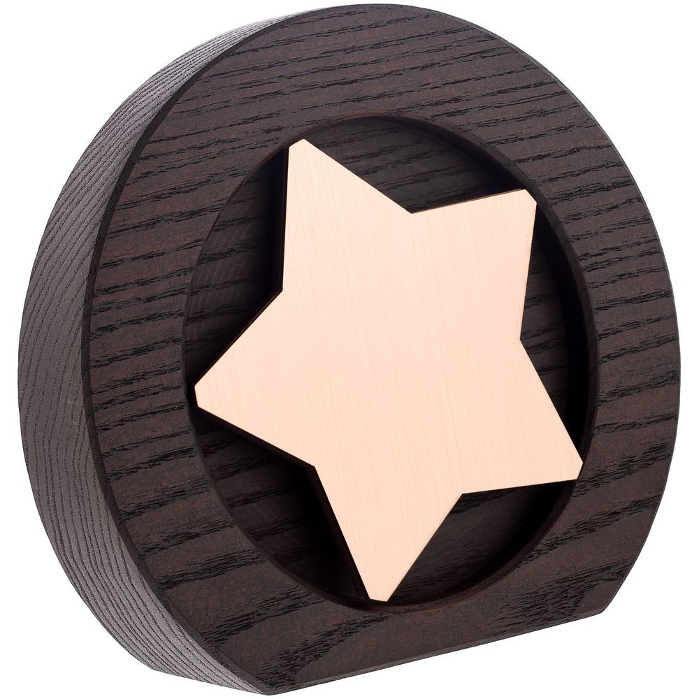 Красивое решение подойдет как для команды, так и для отдельных выдающихся личностей. Вставка со звездой из зеркального пластика на деревянной основе крепится на приподнятое основание внутри стелы, что создает объем и многослойность награды. На вставке предусмотрен клеевой слой для крепления после нанесения.Дизайн: Алексей Чугунников Исключительное право: ООО «Проект 111»