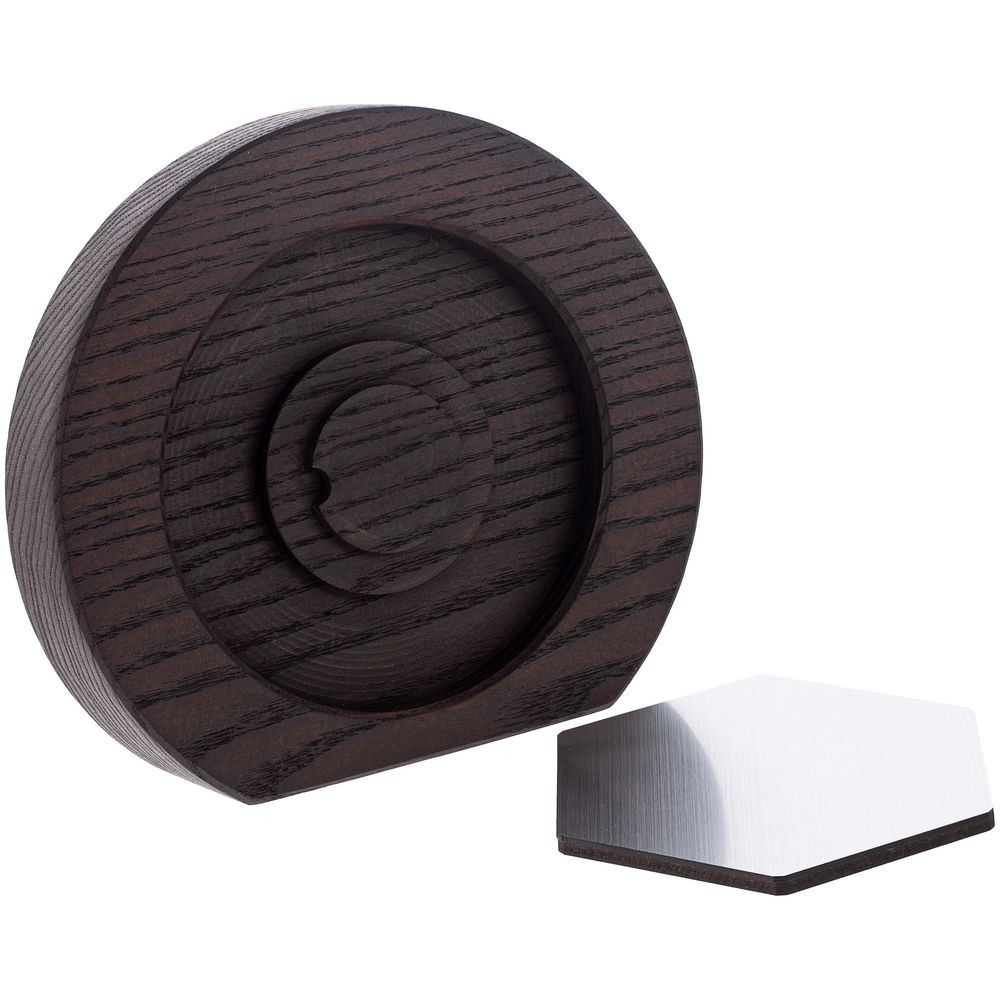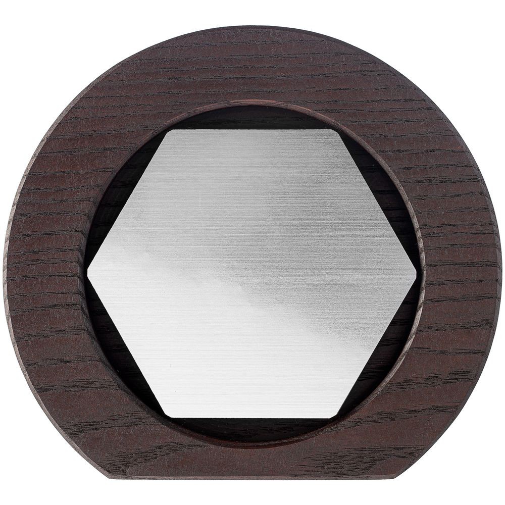 Вставка с шестиграником из зеркального пластика на деревянной основе крепится на приподнятое основание внутри стелы, что создает объем и многослойность награды. На вставке предусмотрен клеевой слой для крепления после нанесения.