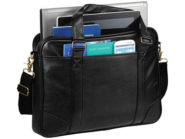 Коллекция сумок Oxford - громкая инвестиция. Сумка с основным отделением на молнии, в которое поместится большинство ноутбуков диагональю до 15,6". Кроме того вы можете поместить в сумку папки, книги и документы. Внутренние кармашки органайзеры для iPad, Surface или других девайсов или бизнес аксессуаров. Кармашек на липучке. Отстегивающийся ремень на плечо, ручки и стропа для крепления к чемодану. Фурнирура под бронзу в античном стиле. Винил.