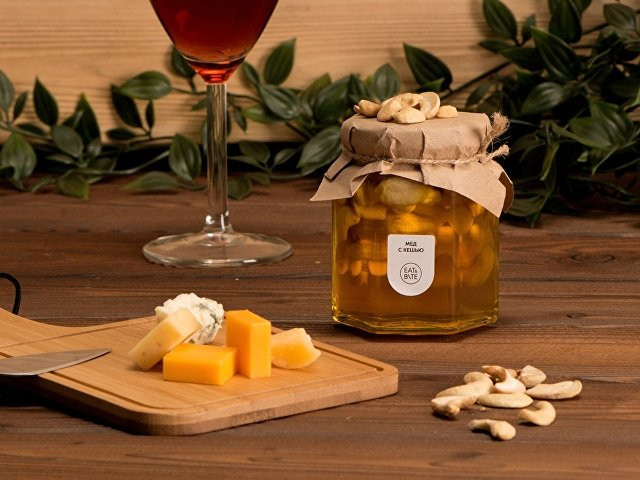 Мед и орехи прекрасно сочетаются друг с другом, образуя оригинальный и запоминающийся вкус. Медовый десерт идеально подойдет для чаепития, поэтому подобный подарок можно также дополнить чаем. Т.к. продукт состоит из натуральных ингредиентов, допускается его засахаривание