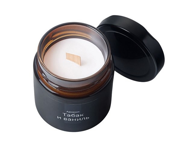 Свеча в стеклянной коричневой банке 200мл, аромат "Табак и ваниль", фитиль деревянный