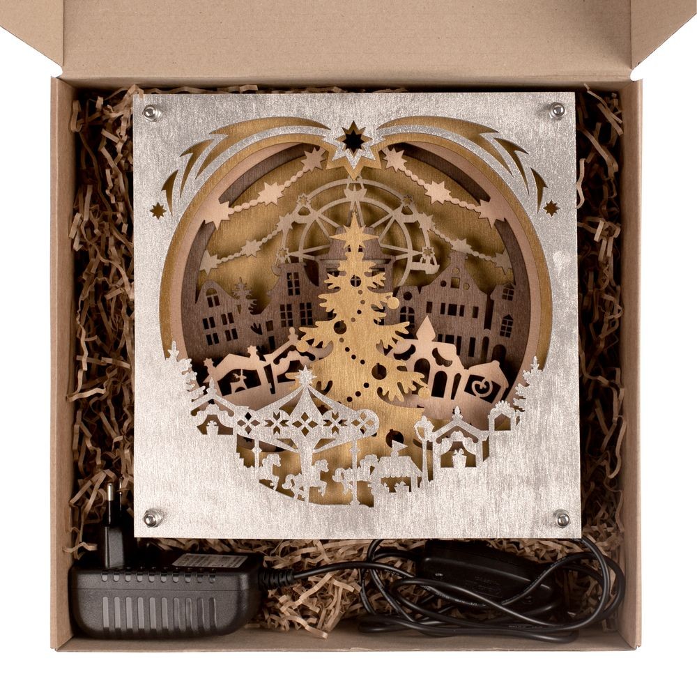 Зимние праздники сотканы из волшебства и чудес — как важно поймать это настроение, но еще приятнее поделиться им с другими!Ночник Merry Christmas с объемными резными изображениями создаст по-настоящему праздничное настроение и погрузит в сказочную атмосферу. В его многослойных очертаниях угадывается знакомый сюжет рождественской ярмарки — участником может стать любой фантазер! Поставляется в индивидуальной картонной коробке.