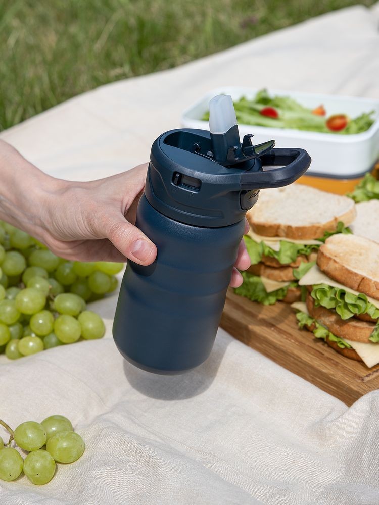 Fujisan — это термос, спортивная бутылка и термокружка одновременно. Две разные по функционалу и дизайну крышки, которые идут в комплекте, позволяют максимально удобно использовать компактный термос дома, на прогулке или в спортивном зале.