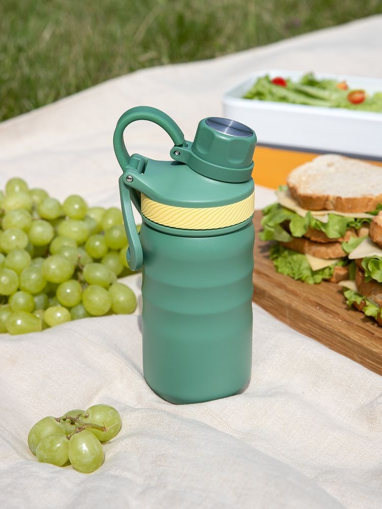 Конструкция с двойными стенками и вакуумной изоляцией сохраняет содержимое холодным до 24 часов, горячим — до 12 часов