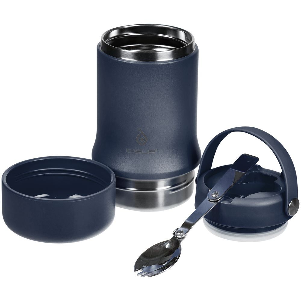 Tabenodo — универсальный многофункциональный термос для работы, школы, похода и путешествия. В компактном корпусе разместились ложка, тарелка и емкость для любимого блюда. Матовая поверхность приятна на ощупь, а силиконовая ручка удобна для переноски. Емкость 590 мл.