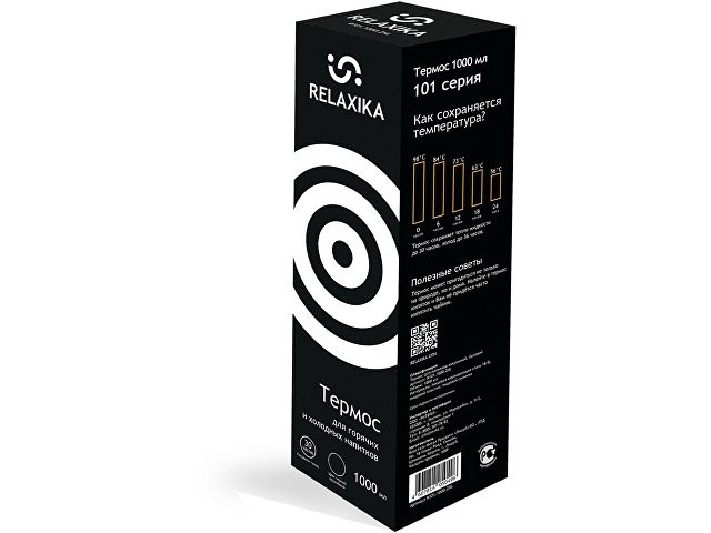 Классический термос Relaxika черного цвета с высокими показателями удержания температуры напитка для походов, путешествий, спорта и ежедневного использования. Прочные двойные стенки из высококачественной нержавеющей стали 18/8 с вакуумной изоляцией гарантируют, что ваш напиток останется холодным в течение 36 часов и горячим до 30 часов. Этот материал не только прочен, но и гигиеничен, не выделяет никаких вредных для здоровья веществ. Ваши напитки сохраняет естественный вкус и не приобретут посторонний запах. - Напиток остается холодным до 36 часов и горячим до 30 часов. - Узкое горлышко позволяет удерживать температуру максимально долго - Крышку термоса можно использовать как чашку - BPA Free. В пластмассах, используемых для производства термосов, отсутствует Бисфенол А - Надежная закручивающаяся пробка с силиконовым кольцом защищает от протекания и помогает удерживать температура - Высококачественная нержавеющая сталь 18/8 Рекомендации по уходу: Не рекомендуется использовать посудомоечные машины при мытье изделия. Мойте мягкими губками и жидкими моющими средствами. Не используйте сухие абразивные средства чтобы не поцарапать поверхность. После мытья необходимо протереть сухой салфеткой или полотенцем и оставить сушиться без крышки. Не для микроволновой печи или морозильной камеры. Чтобы предотвратить утечку, тщательно закройте верхнюю крышку.