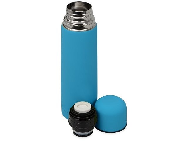Универсальный термос с мягким прорезиненным покрытием софт-тач. Удобно и приятно держать в руке. Благодаря вакуумной изоляции и двойным стенкам сохраняет напитки горячими 24 часа. Герметичный клапан открывается и закрывается по легкому нажатию. Термос поставляется в дорожном чехле из искусственной кожи.