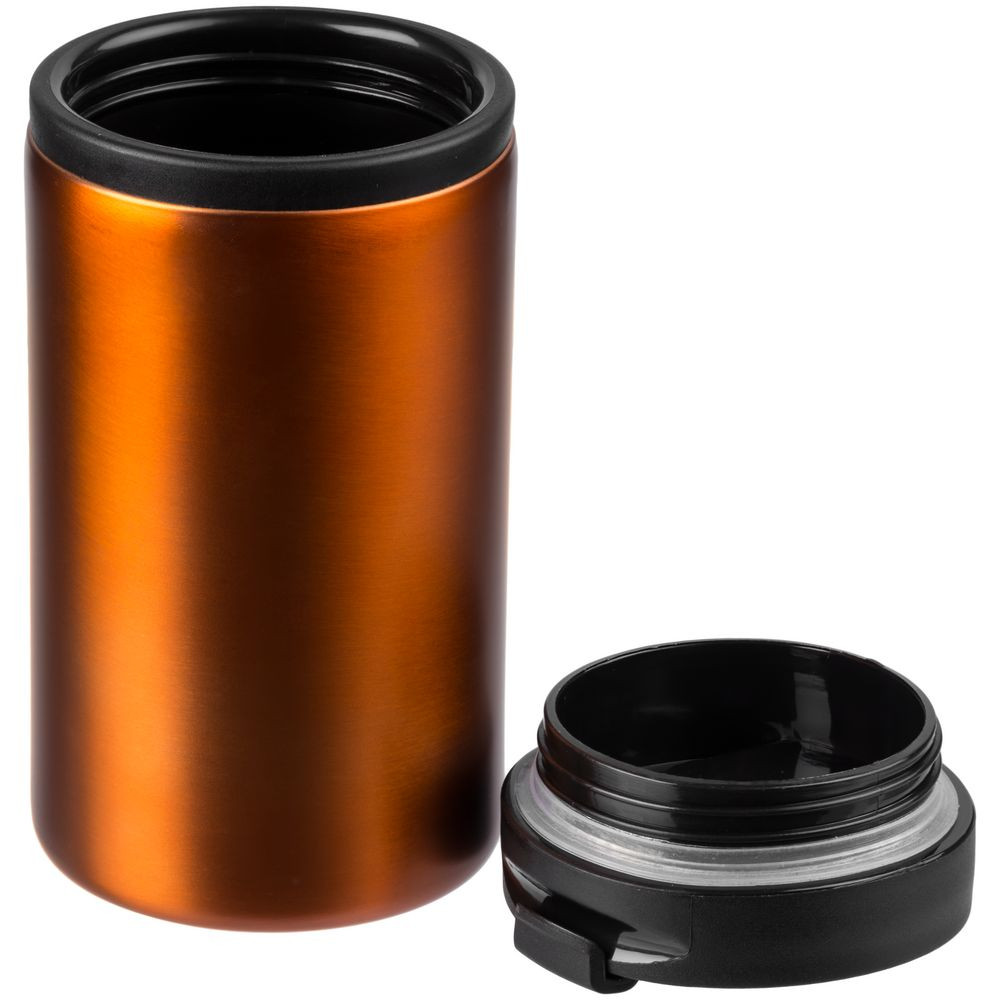 Двухслойная конструкция из пищевого пластика внутри и нержавеющей стали снаружи. Герметичная завинчивающаяся крышка с откидным клапаном для питья.