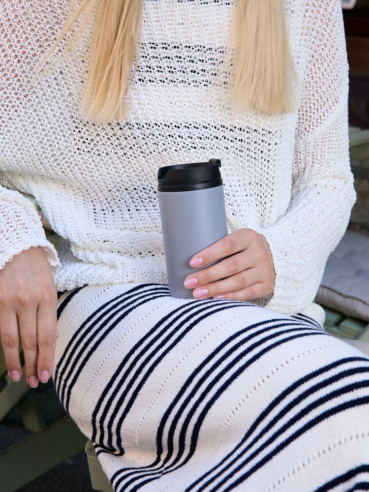 Двухслойная конструкция из пищевого пластика внутри и нержавеющей стали снаружи. Герметичная завинчивающаяся крышка с откидным клапаном для питья.