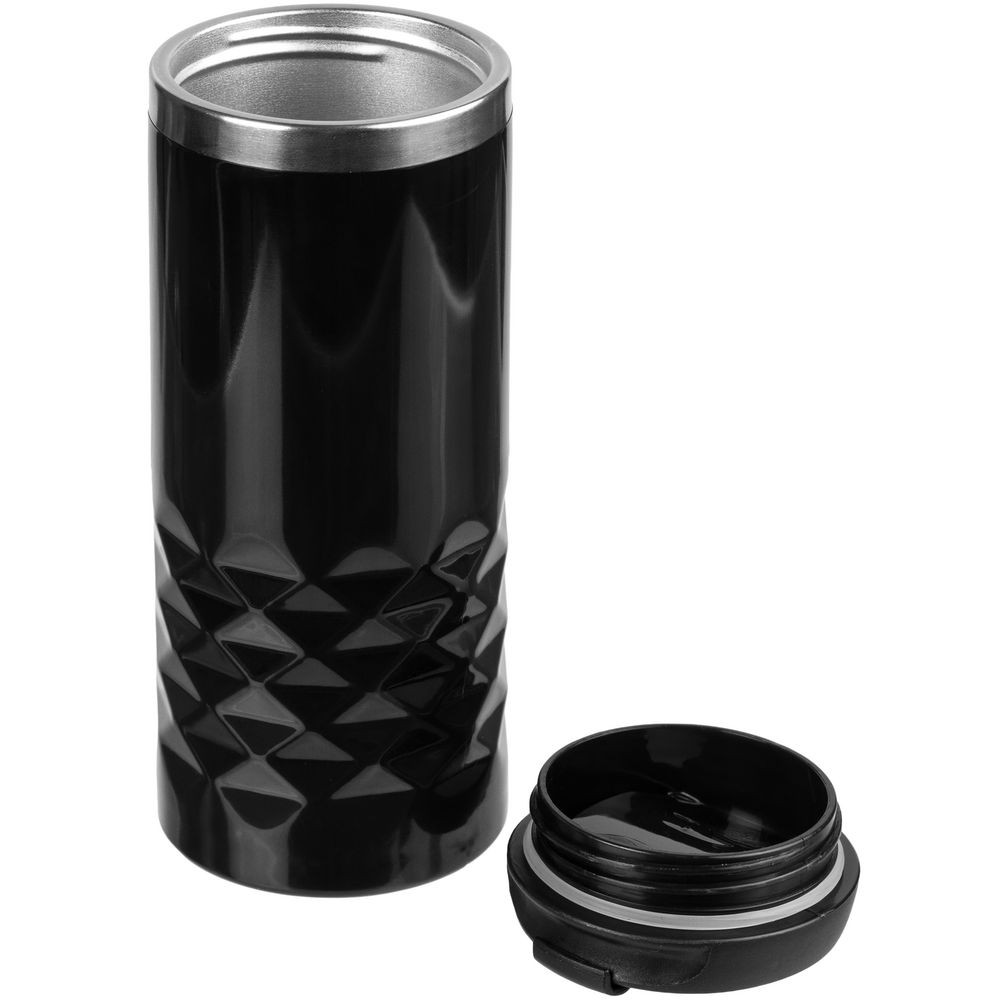 Двухслойная конструкция из пластика снаружи и пищевой нержавеющей стали внутри. Герметичная завинчивающаяся крышка с откидным клапаном для питья.