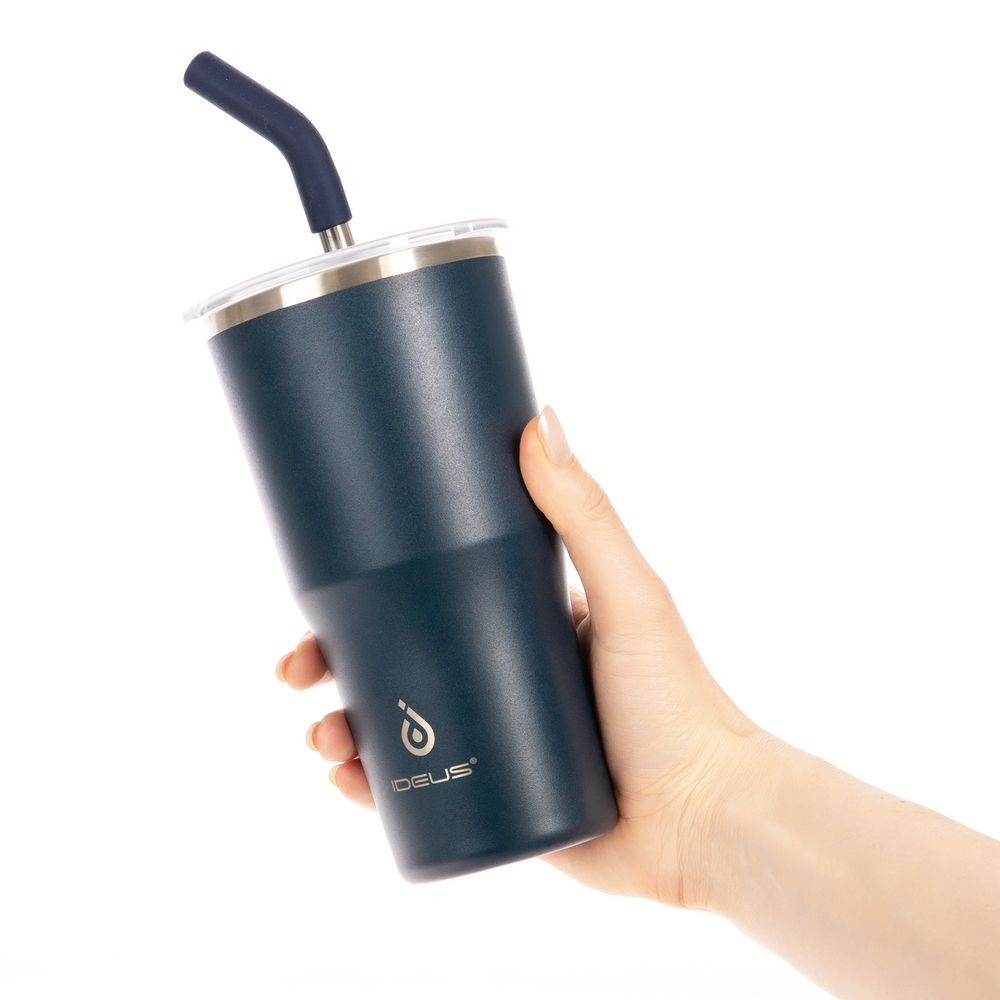 Материал: корпус - нержавеющая сталь, 18/8; крышка - пластик; трубочка - нержавеющая сталь, пищевой силикон