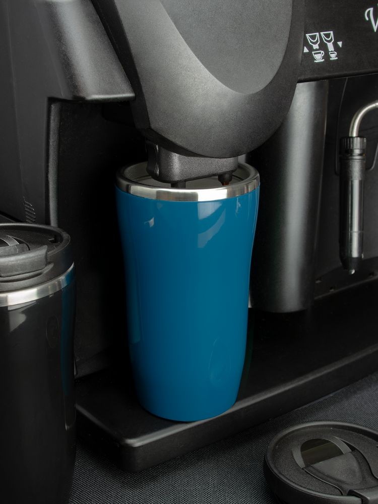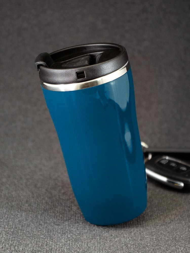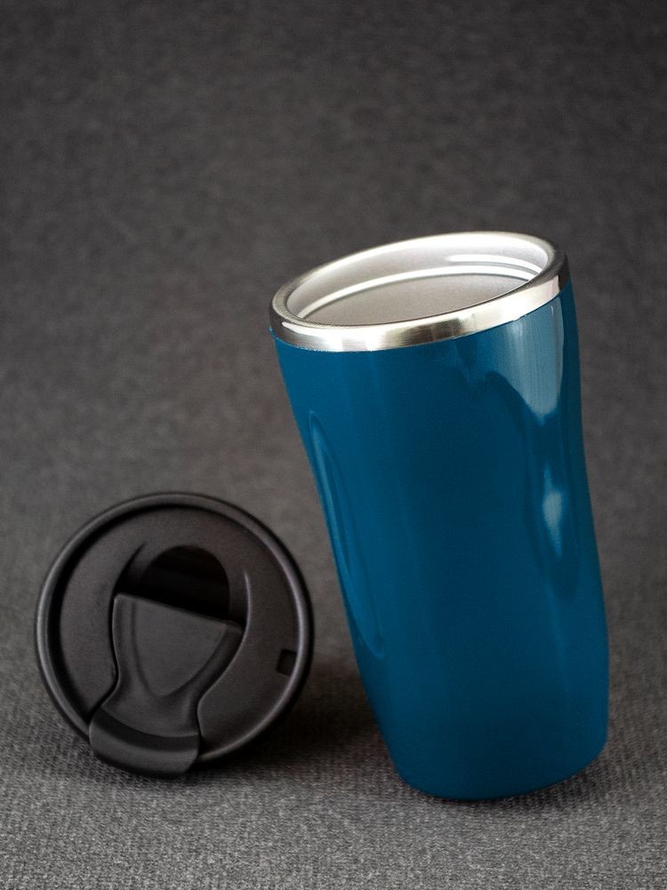 Двухслойная конструкция из пластика снаружи и пищевой нержавеющей стали внутри. Герметичная завинчивающаяся крышка с откидным клапаном для питья. В отверстие в крышке можно вставить шнурок для удобного ношения стакана на руке. Шнурок в комплект не входит.