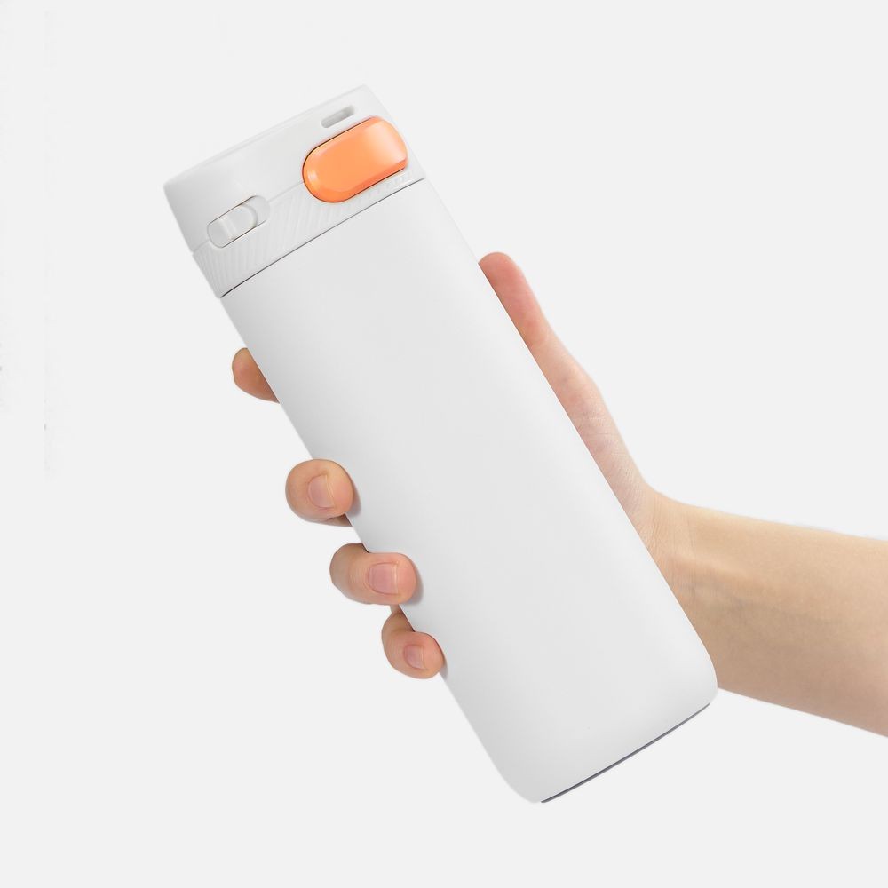Термостакан X1 с цветной кнопкой, белый с оранжевым
