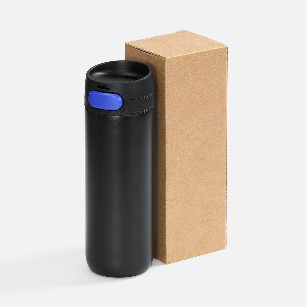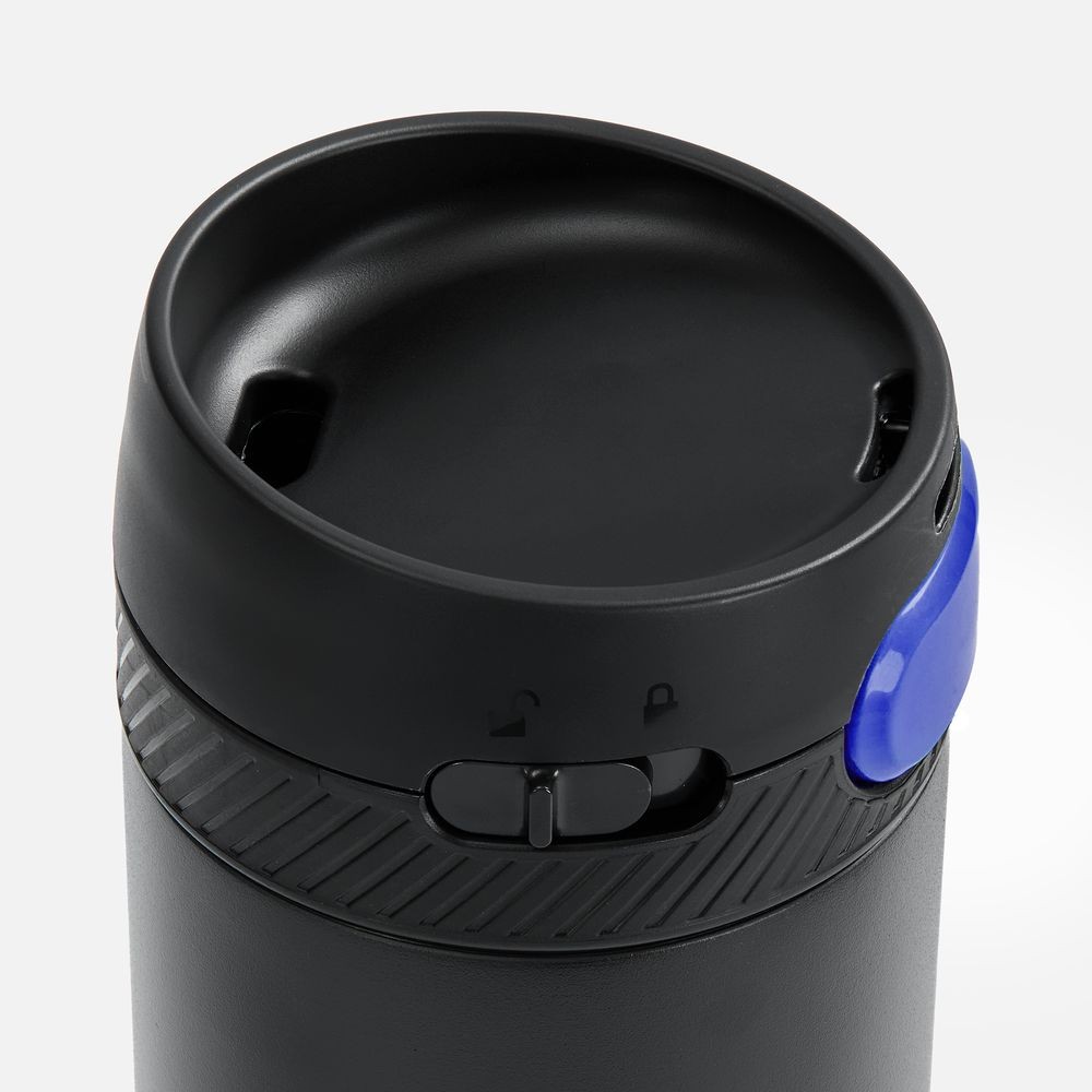 Термостакан X1 с цветной кнопкой, черный с синим