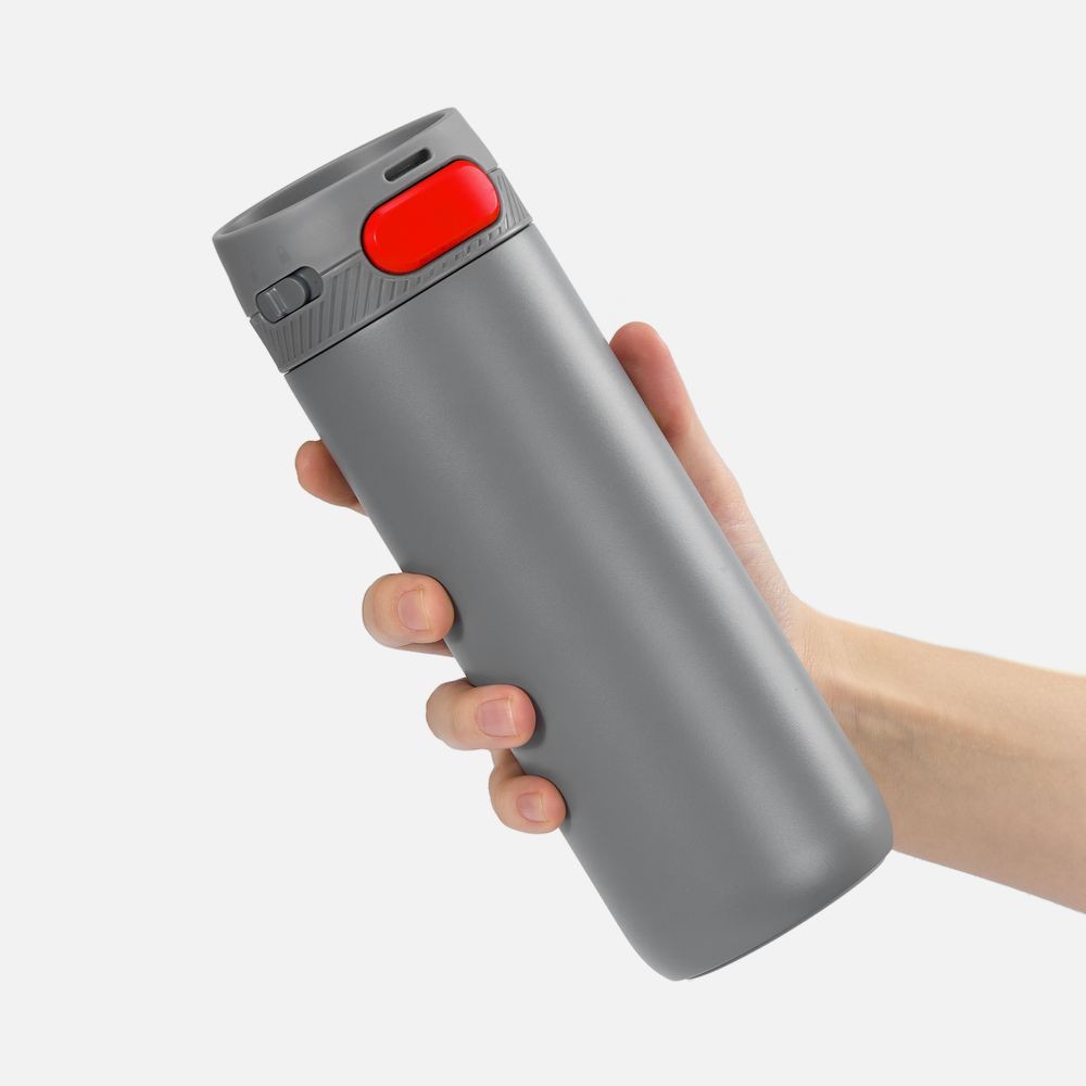 Термостакан X1 с цветной кнопкой, серый с красным