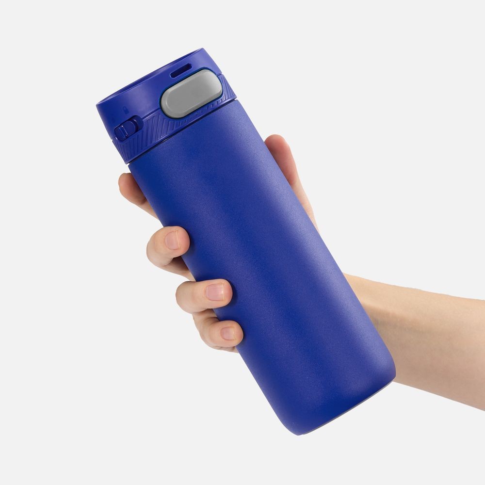 Термостакан X1 с цветной кнопкой, синий с серым