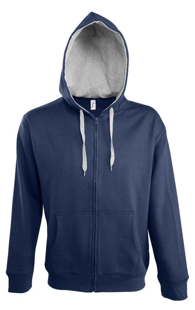 Толстовка мужская на молнии Soul Men 290 с контрастным капюшоном, темно-синяя