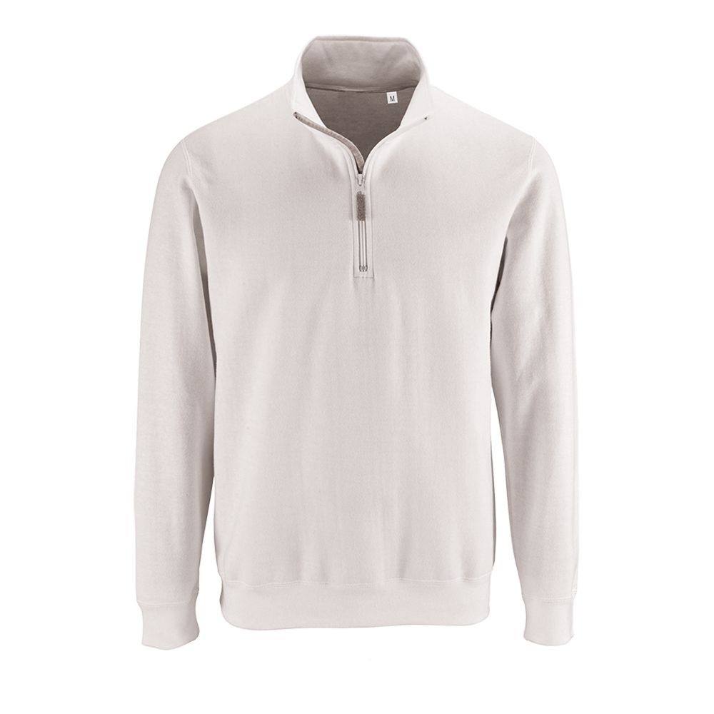 Толстовка с воротником-стойкой на молнии. Лейбл производителя в боковом шве изнутри, в шве горловины - только бирка с размером, что позволяет вам нанести свой логотип.