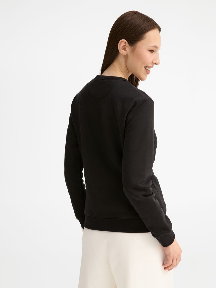 Женская утепленная толстовка с круглым вырезом и декоративной треугольной вставкой. Лейбл производителя в боковом шве изнутри, в шве горловины — только бирка с размером, что позволяет вам нанести свой логотип.