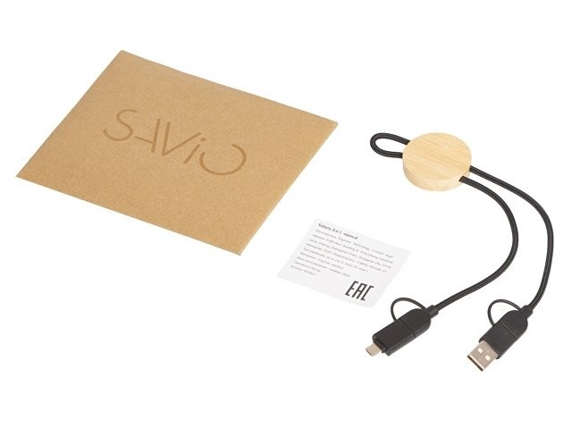 Зарядный кабель «Acalypha» — это экологичное и функциональное решение для быстрой зарядки устройств. Разработанный с упором на устойчивость и стиль, этот универсальный кабель сочетает в себе современные технологии и заботу об окружающей среде. Универсальное подключение: Кабель оснащён всеми популярными типами разъёмов — USB-C, USB-A, Lightning — что позволяет использовать его с широким спектром устройств: смартфонами, планшетами, наушниками, портативными колонками и другими гаджетами. • Мощность до 25 Вт: Поддерживает высокоскоростную зарядку (до 25 Вт), обеспечивая быстрое восстановление энергии даже для мощных устройств без потери качества. • Экологичный дизайн: Изготовлен из переработанных материалов: - ПЭТ (полиэтилентерефталат) — из вторсырья пластиковых бутылок; - ТПЕ (термопластичный эластомер) — безопасный и устойчивый материал, повторно использованный для оболочки кабеля. С каждым использованием вы делаете шаг к снижению пластикового загрязнения. • Дизайн с натуральными элементами: Кабель может быть использован как брелок, корпус сделан из натурального бамбука, также имеется петелька для крепления к чему-либо. Бамбук создает привлекательность и ощущение тепла и натуральности. • Упаковка из переработанной бумаги: Комплект поставляется в минималистичной упаковке из переработанного картона с логотипом SAViO, подчёркивающей экологическую направленность бренда.