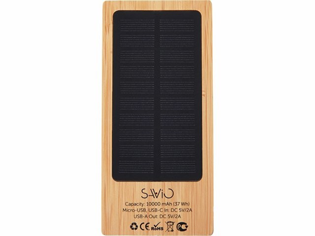 Внешний аккумулятор ёмкостью 10 000 мАч, созданный для тех, кто ценит стиль, функциональность и заботу о природе. Корпус устройства изготовлен из натурального бамбука и переработанного ABS-пластика — это не только придаёт ему уникальный эстетичный вид, но и снижает экологический след. С одной стороны — солнечная панель, позволяющая подзаряжать устройство от солнца, с другой — панель с возможностью нанесения светящегося логотипа компании или бренда. Идеальное решение для путешественников, офисных сотрудников и корпоративных подарков — технологично, стильно и ответственно. - Заряжайтесь от солнца — встроенная солнечная панель для автономного пополнения энергии - Экологичный дизайн — корпус из натурального бамбука и переработанного пластика - Яркий брендинг — логотип с подсветкой - Ёмкость 10 000 мАч — зарядит смартфон 2–3 раза за один цикл - Идеальный корпоративный подарок — стильный, полезный и запоминающийся