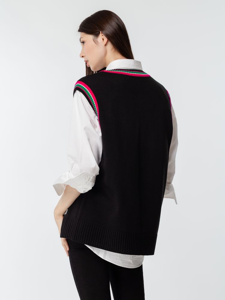 В дизайне жилета Cornell найден идеальный баланс между актуальной уличной модой и нестареющей классикой — элегантностью стиля old money. Неброские базовые цвета, легкий оверсайз и цветовой акцент на неглубоком вырезе создают самодостаточный сдержанный образ уверенного в себе и своем будущем человека. Оверсайз жилет с V-образным вырезом и цветной отделкой.В комплект к жилету прилагается легкая хлопковая сумка.