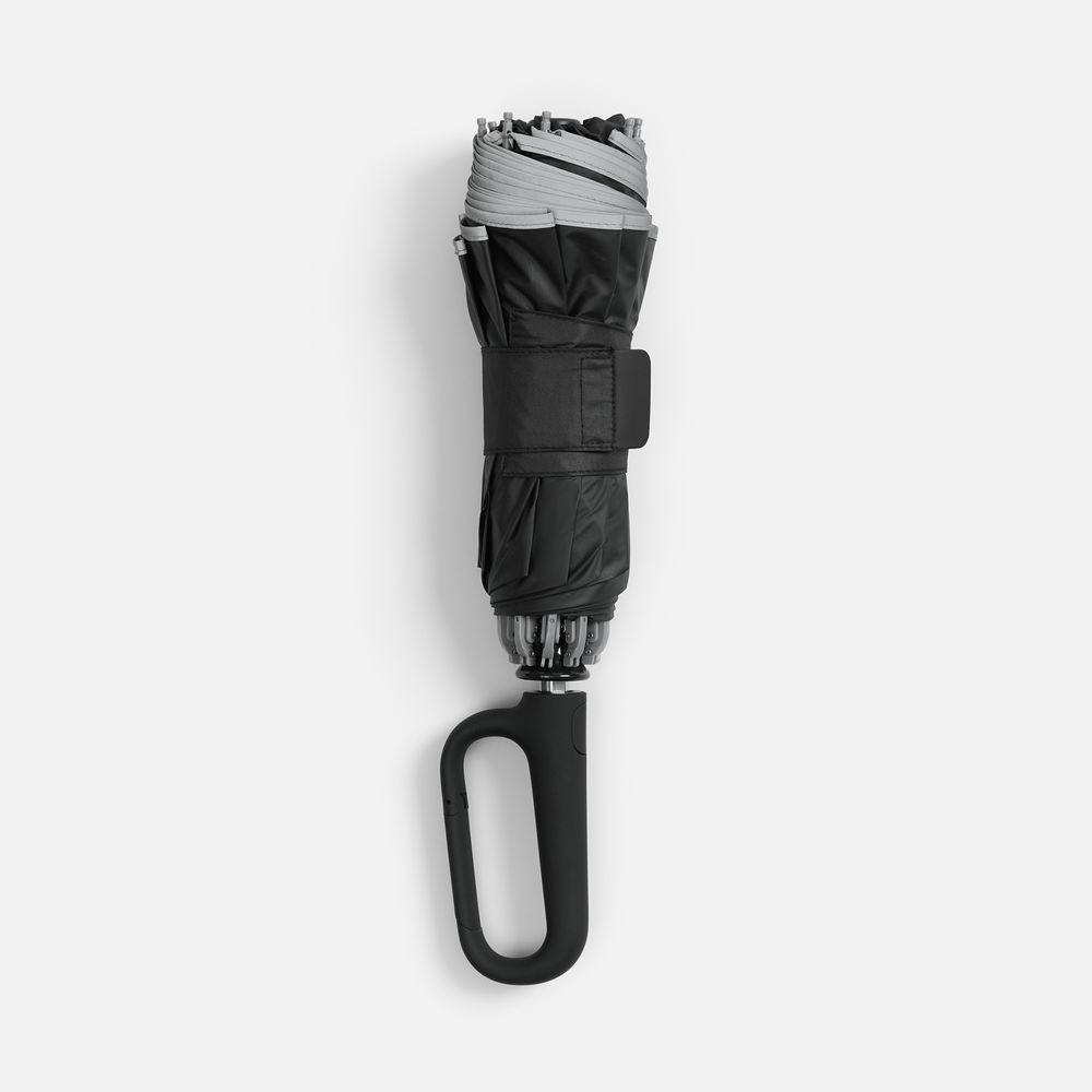 Зонт обратного сложения с ручкой-карабином Foldberry, черный