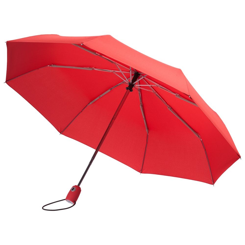 Зонт-автомат, 3 сложения, 8 спиц Поставляется в чехле с черной окантовкой Оснащен системой защиты от ветра Ручка с покрытием Soft-Touch и эластичной петлей