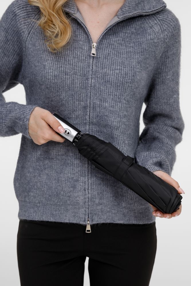 Зонт PRESTON складной с ручкой-фонариком, полуавтомат; черный; D=100 см; 100% полиэстер, Черный