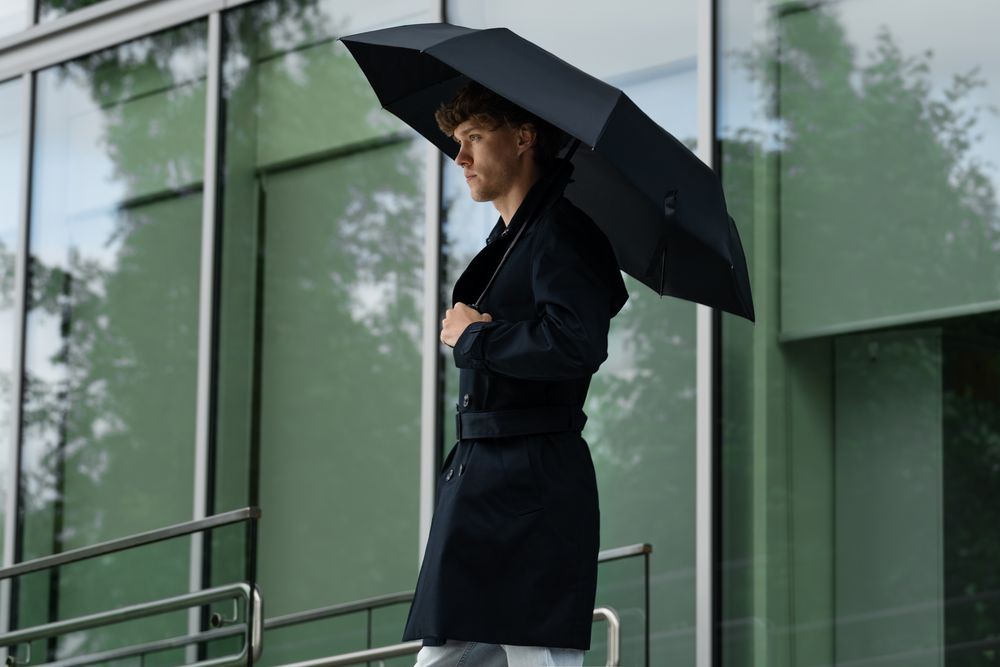 Элегантное решение классического зонта — с надежной ребристой ручкой и насыщенными оттенками купола.