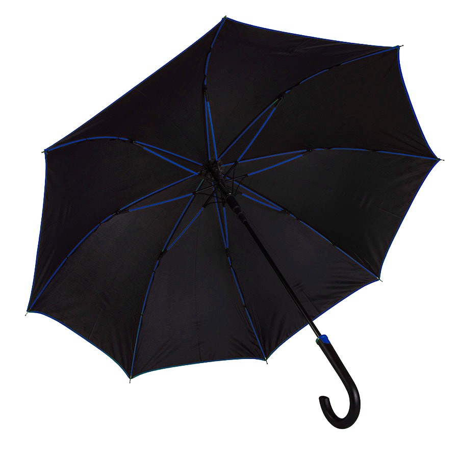 Зонт-трость BACK TO BLACK, пластиковая ручка, полуавтомат, Черный