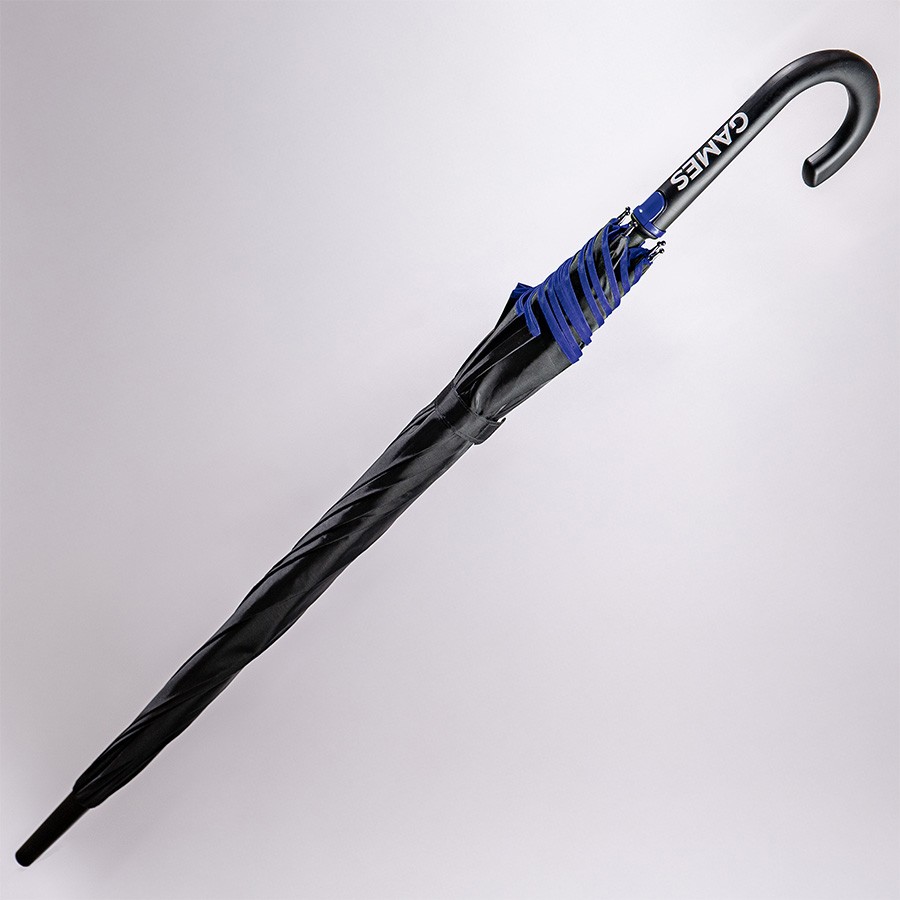 Зонт-трость ANTI WIND, пластиковая ручка, полуавтомат, Черный